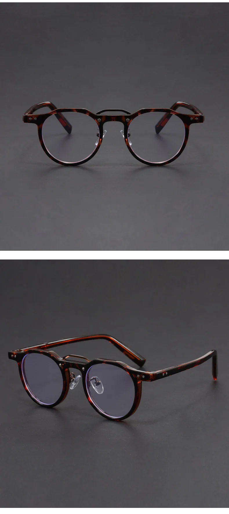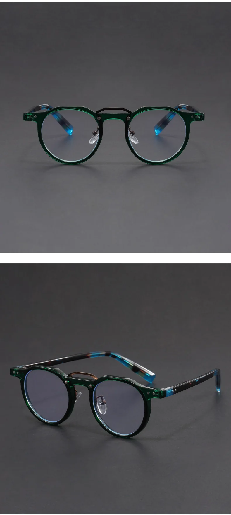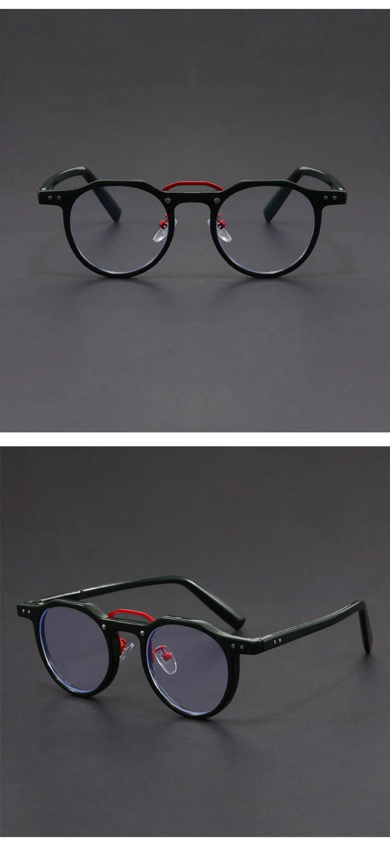 HIGH QUALITY FRAME DESIGN ►This small circle blue light blocking glasses are made of high-quality acetate fiber and reinforced metal hinges, paired with a popular rivet design. The anti-slip design on the inner end of the mirror legs allows you to easily wear them all day long. These trendy round glasses provide style and protection that won't let you down.