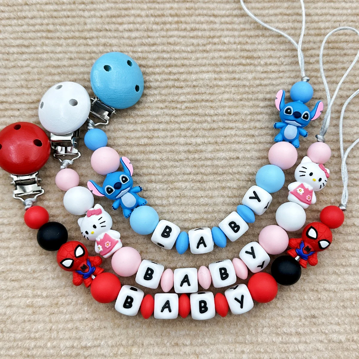 Customized Name English Letters Baby Silicone Pacifier Clips Chains Holder Teether Pendants Teething Kawaii baby Gifts