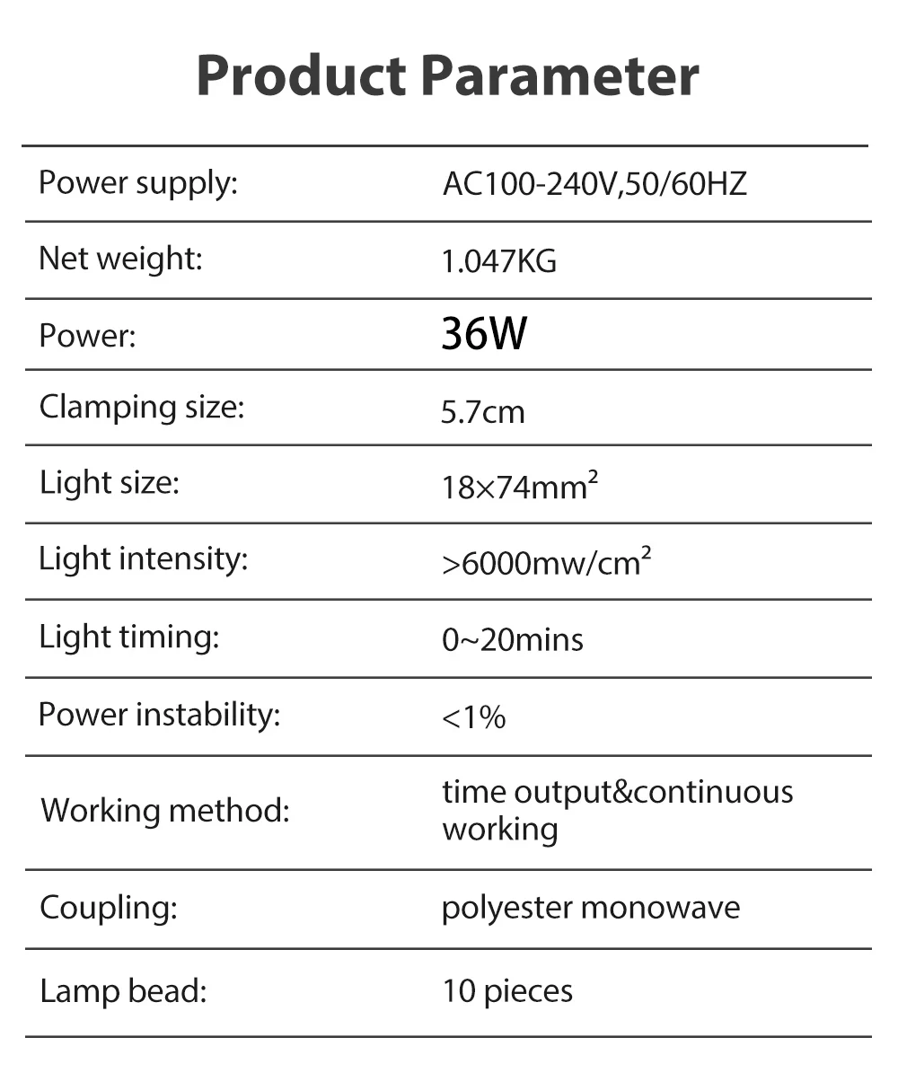(2).10 powerful LED tubes emit a high intensive cold blue light with an output at 6000M W/CM2.